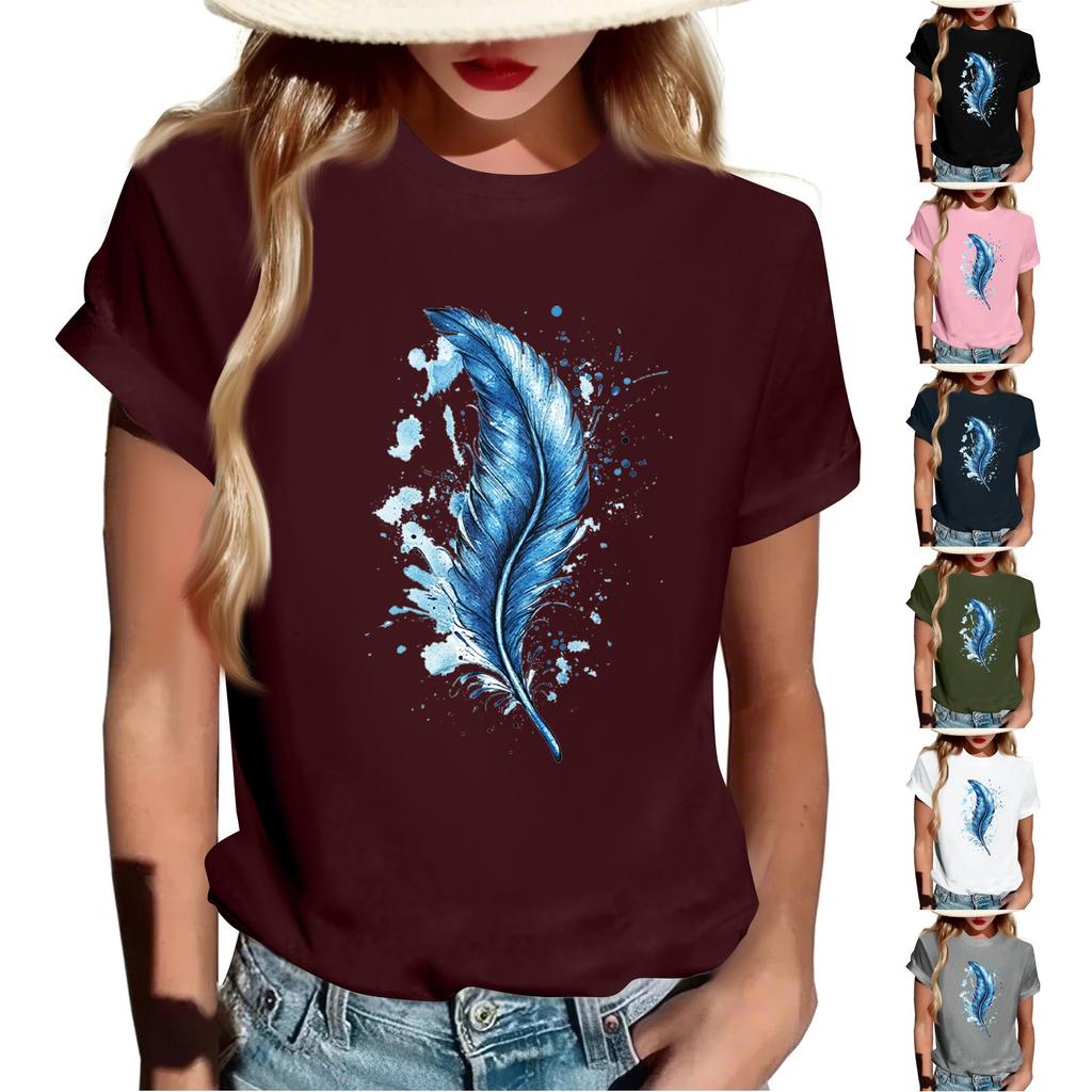 Women's Fashion Casual Printed Short Sleeve Round Neck Pullover Tops