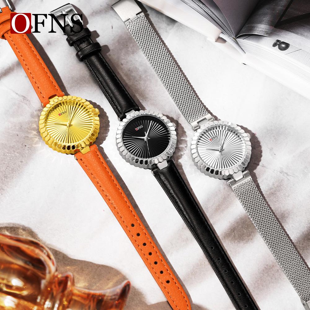 Oufanni Women's Sunburst Quartz Watch with Cowhide Strap – Waterproof, Fan-Shaped Versatile Design, Model 1643.