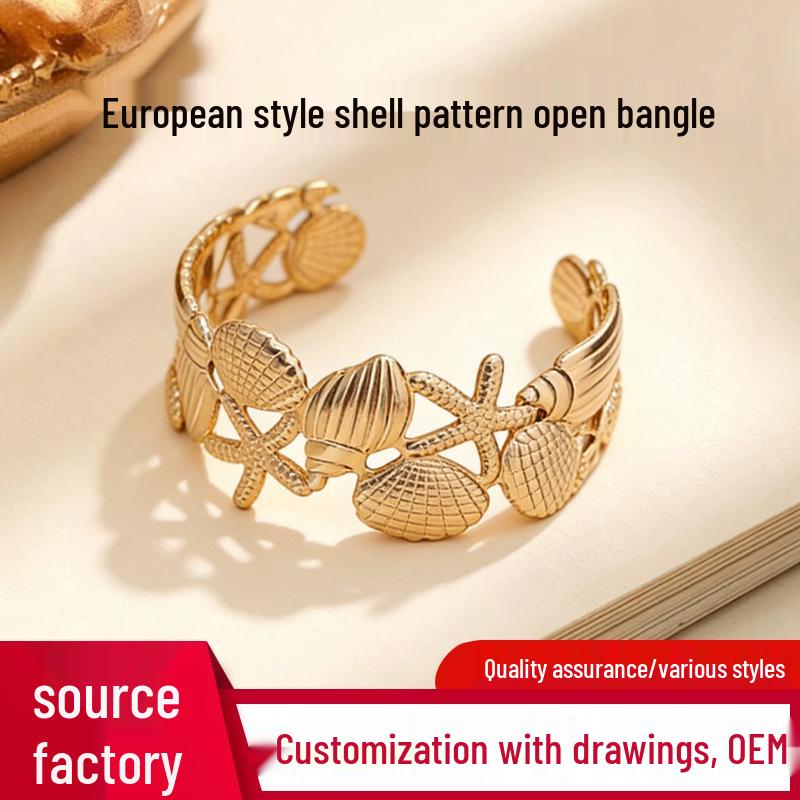 Adjustable European Seashell Open Cuff Bracelet - High-End Niche Design Metal Bangle