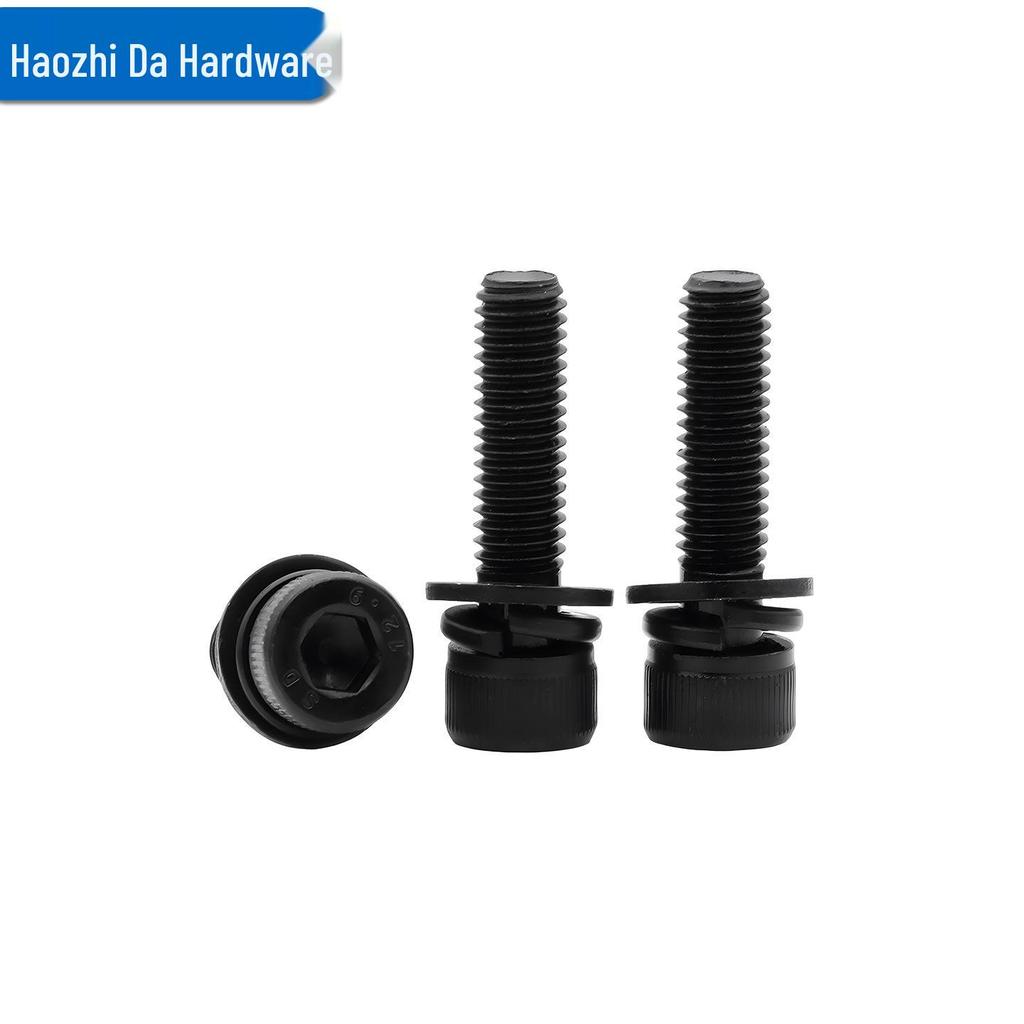 High-Strength Black Socket Head Cap Screws with Washers, Class 12.9, Cylindrical, M2-M12, 3-Piece Set