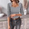 Kadınlar İçin Kare Yaka Uzun Kollu Örgü Kazak Pullover Alt Giyim Gömlek