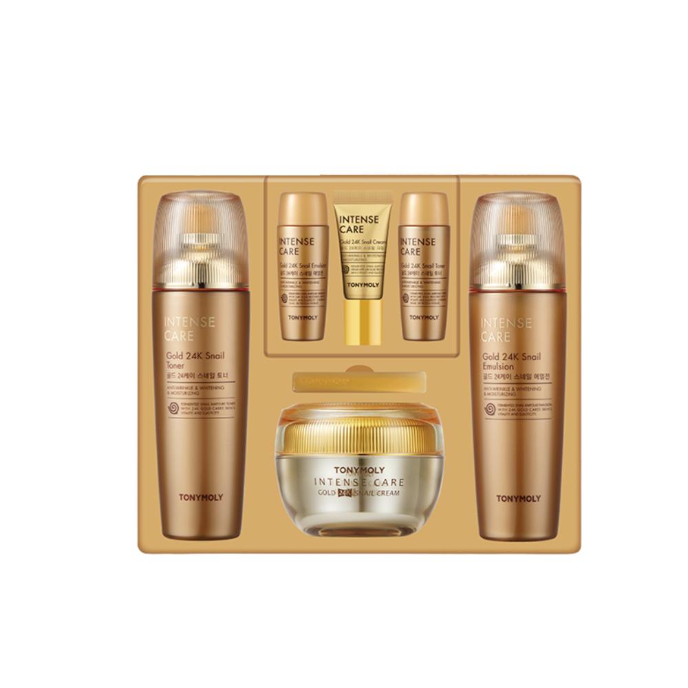 TONYMOLY Intense Care Gold 24K Snail Skincare 3-Item Set - Premium Snail Mucin & 24K Gold Luxury Gift Kit