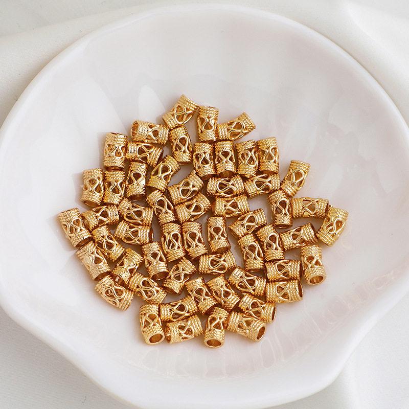 14K Gold Plated W-Shaped Carved Tube Spacer Beads for DIY Handmade Jewelry