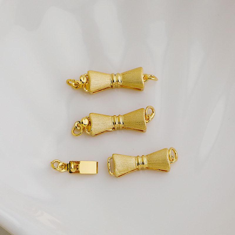 18K Gold Plated Brushed Bow Tie Lapel Pin with Single Row Necklace Clasp and Pearl End - DIY Jewelry Accessory