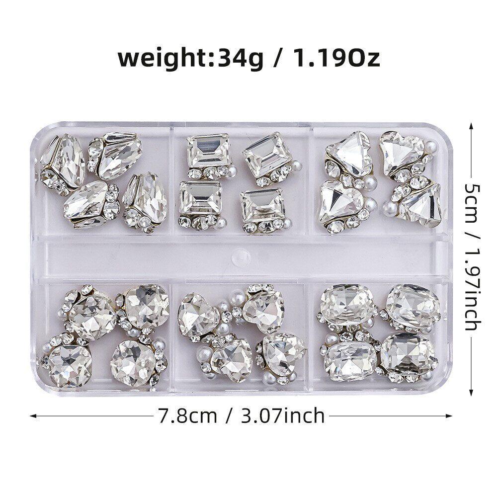 24-Piece Set: Plain White Water Nail Art Rhinestones with Crooked Heart and Fat Square Design for Nail Salons