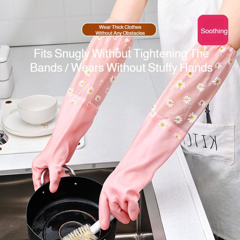 Dishwashing gloves women thickened housework kitchen durable laundry long gloves plus velvet rubber
