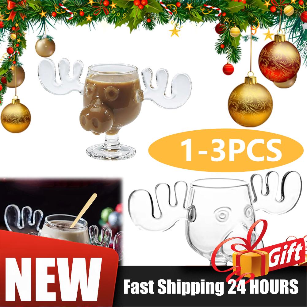 Creative Elk Glass Cup 8oz 240ml Christmas Vacation Moose Mug With Cat Spoon Xmas Reindeer Head Coffee Cup Wine Mug Water Cup