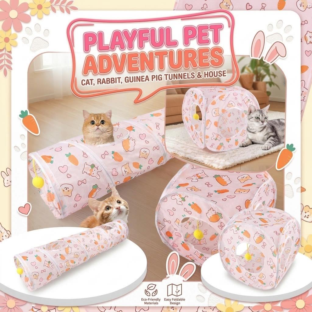 Foldable Pet Play Tunnel Tube for Cats Rabbits Guinea Pigs Interactive Toy