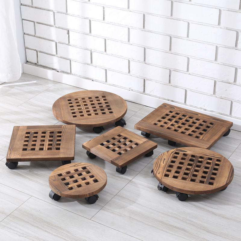 Bonsai Wood Flower Stand with Wheels | Square/Round Anti-Corrosion Elevated Pot Tray for Indoors