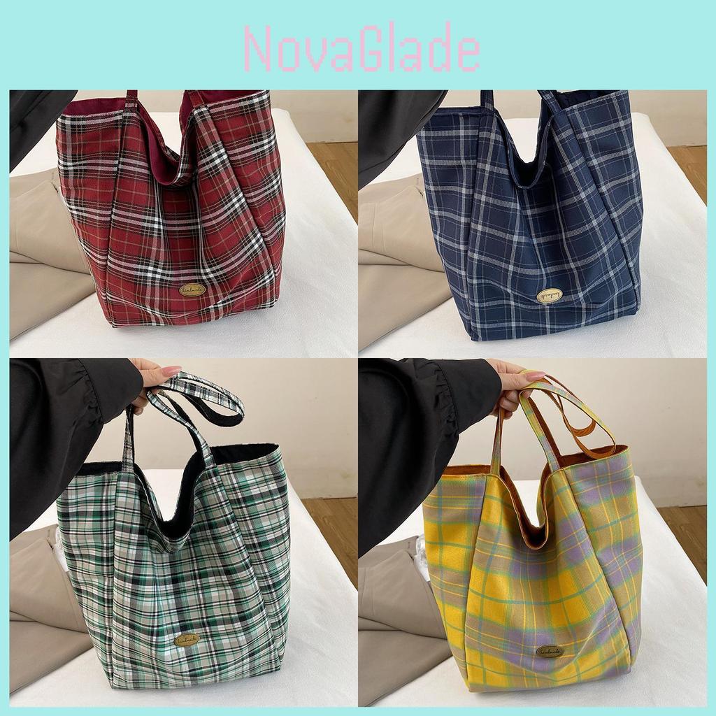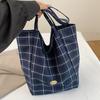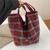 Stylish Korean Literary Inspired Plaid Double-sided Shoulder Tote Bag For School Use