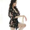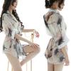 Sex underwear sexy temptation chiffon bathrobe pajama set kimono perspective printing nightclub princess clothing 8522