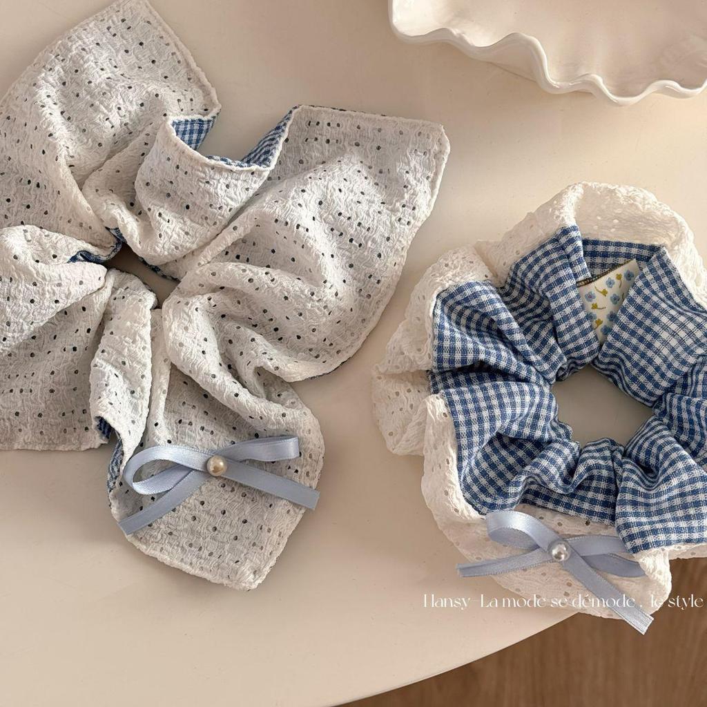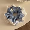 Blue Plaid Double-Sided Bow Ballet Hair Tie - Mori Style