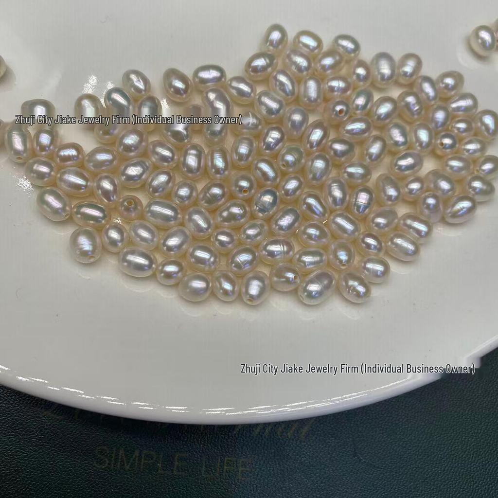 5-6mm Rice-Shaped Freshwater Pearl Beads, Half-Drilled, Strong Luster, with Minor Imperfections, Ideal for DIY Jewelry.