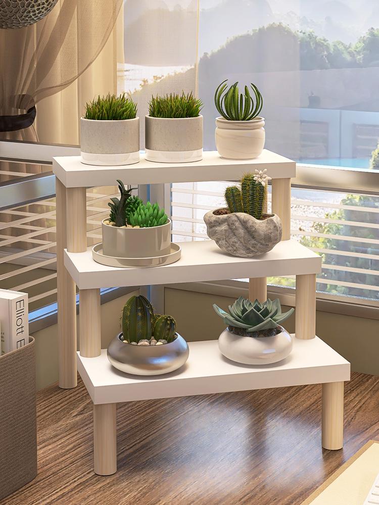 Desktop Ladder-Style Solid Wood Flower Stand for Small Plants and Succulents
