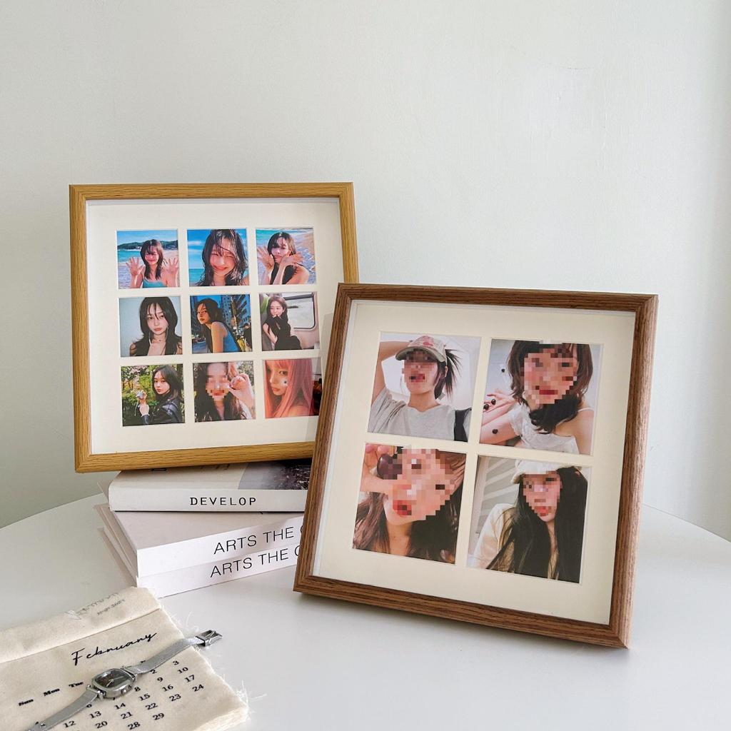 Nine-Grid Wooden Photo Frame: Creative Tabletop & Wall Hanging for Wedding Photos & Baby Polaroid Prints