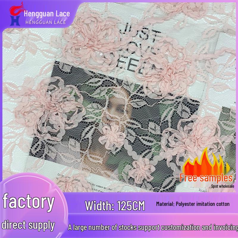 Pink Lace Fabric Roll with 3D Flower, Bead, and Sequin Embroidery for Children's Clothing Accessories