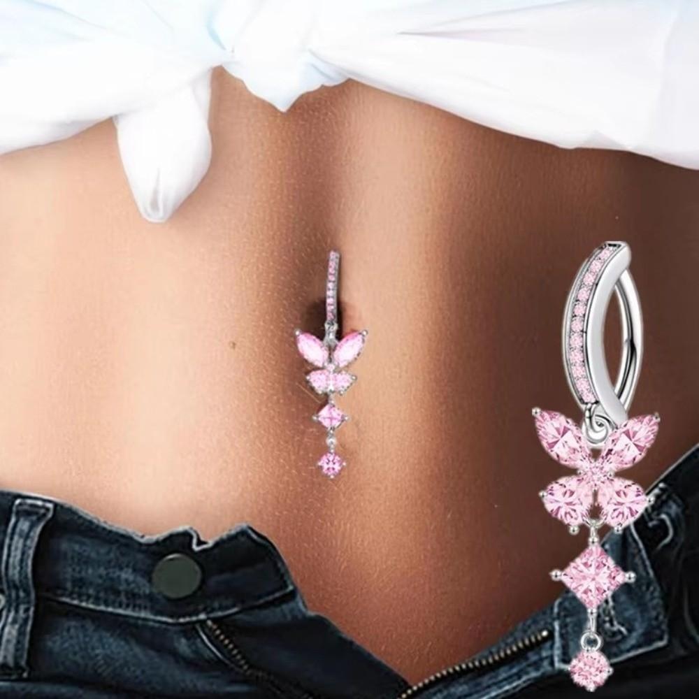 Butterfly Gem Navel Piercing Stainless Steel Shiny Body Jewelry Zircon Belly Button Rings Stylish