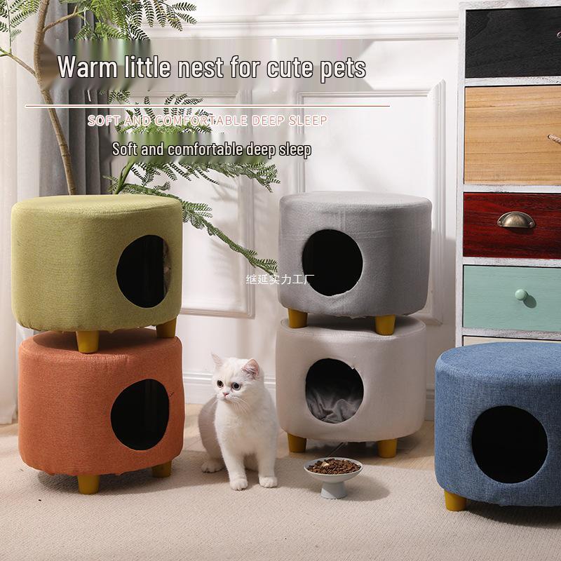 Solid Wood All-Season Cat Bed Stool: Warm Winter Semi-Enclosed Pet Bed for Kittens and Puppies