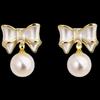 Gold-Plated Silver Needle Zircon Bow Pearl Earrings - Light Luxury, High-End Feel, Fashionable Stud Accessories