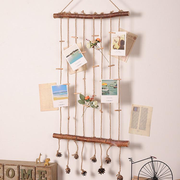 Handmade Raw Wood & Hemp Rope Photo Wall Display for Kindergarten