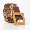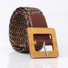 Women's woven belt Wood color square buckle decorative jeans belt Simple fashion dress belt