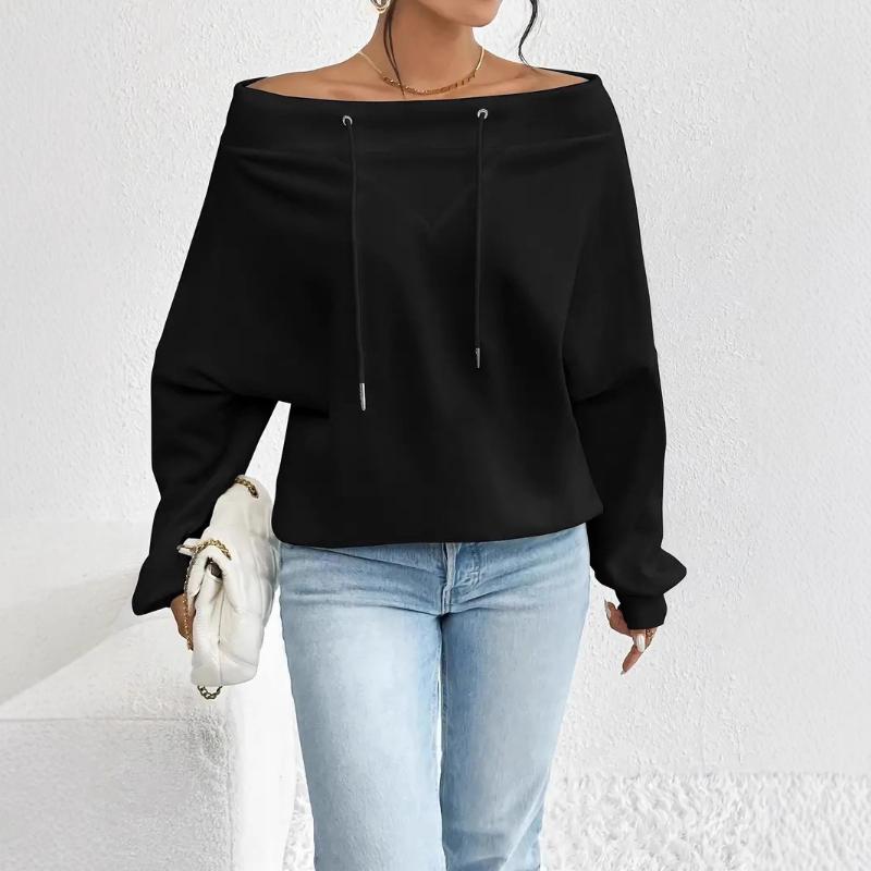 Women's Solid Off Shoulder Sweatshirt Drawstring Batwing Sleeve Top Spring Autumn Casual Streetwear
