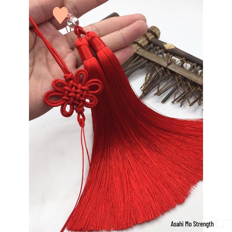 Handmade Chinese Knot Car Pendant with Double Rayon Tassels - Year of the Horse Design