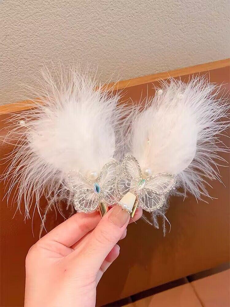 Children's butterfly feather fairy hairpin girl performance Hanfu side clip princess hairpin little girl headdress