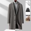 %100 Üst Düzey Yün El Yapımı Çift Taraflı Yünlü Kaban Orta Uzun Takım Yaka Kaz Tüyü Çıkarılmış İç Yünlü Erkek Kaban