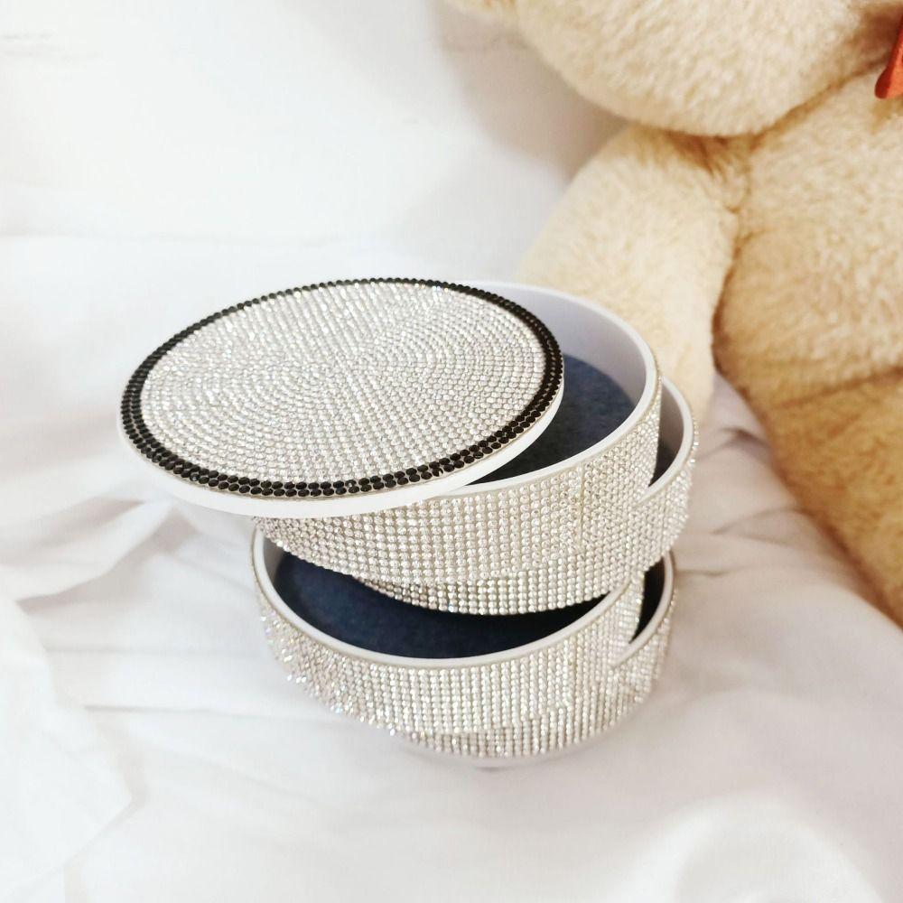Sparkling Rotating Jewelry Storage Box 4 Layers with Lid Rhinestones Desk Organizer Decorative Rotatable