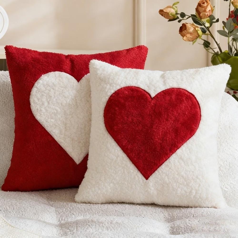 Soft Valentine Heart Pattern Pillowcase Embroidery Decorative Tufted Cushion Case 45CM Square Throw Pillow Cover Bedroom