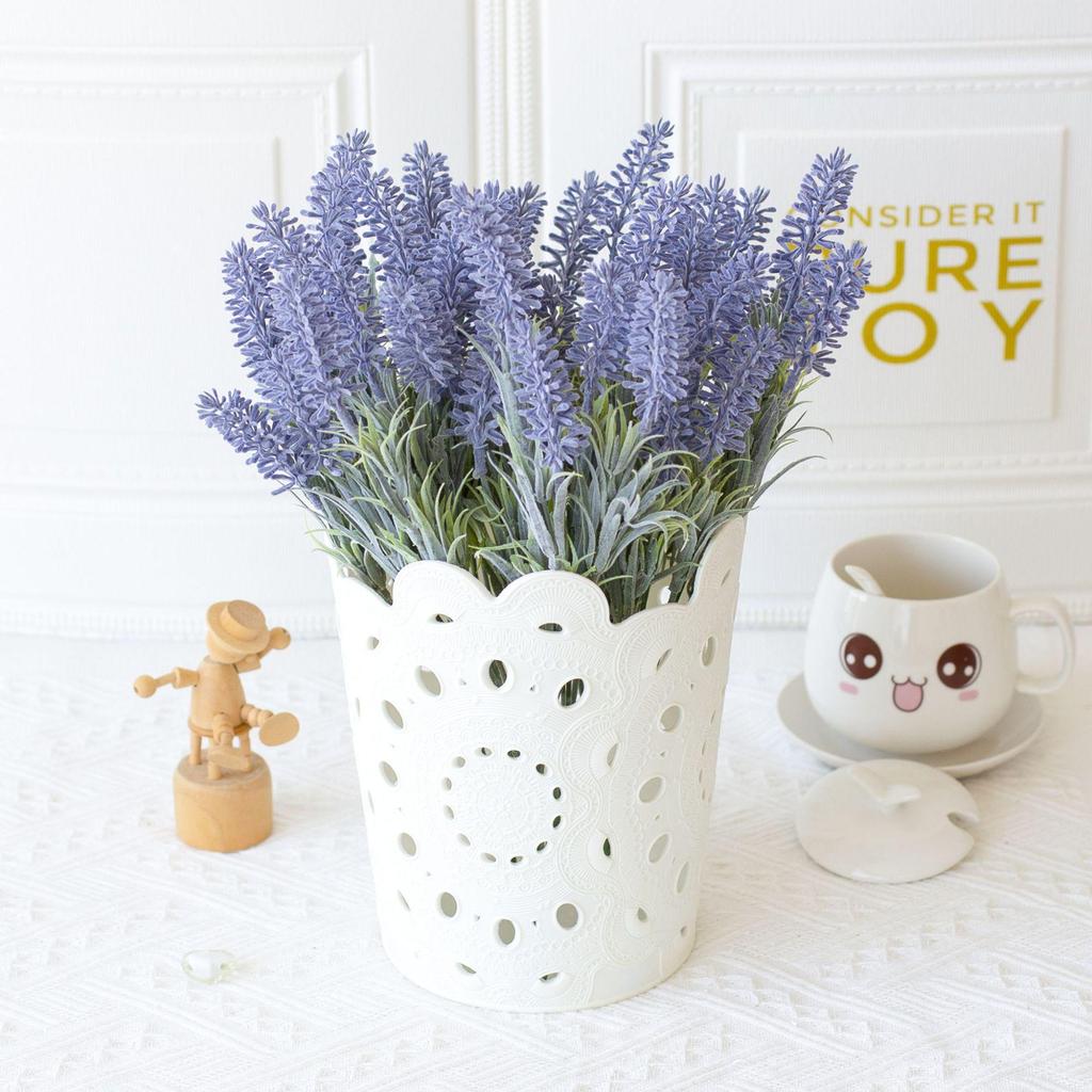Realistic 7-Head Flocked Lavender Silk Flowers for Home Decor and Wedding Photography