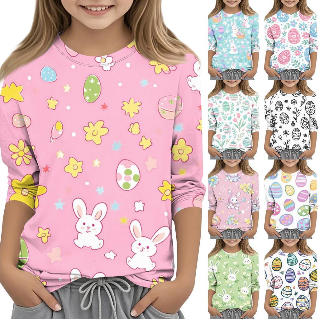 Children's Easter Printed Round Neck Seven Quarter Sleeve Casual T-shirt