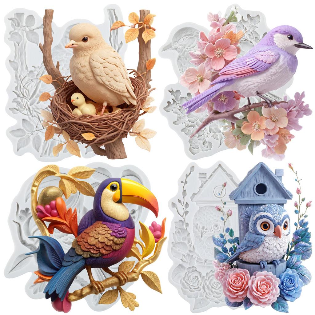 Crow Owl Silicone Molds Bird Tree Branch Fondant Mold Cake Decorating Tools Cupcake Topper Chocolate Candy Craft Gum Paste Polymer Clay