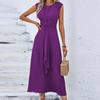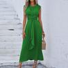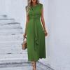 Women's Fashion Casual -Color Waist-Tied Long Sleeveless Dress