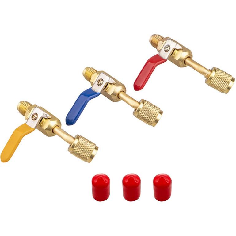 3PCS Air Conditioning Refrigerant Shut Valves 1/4" SAE Male to Female Fitting for R410A R134A R12 R22 R502 Charging Hose