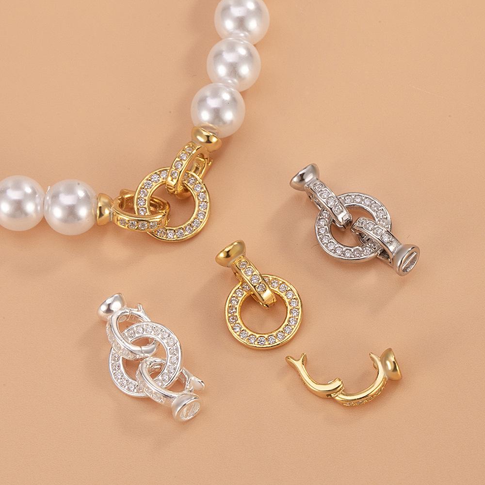 18K Gold-Plated 925 Sterling Silver Universal O-Ring Clasp with Inlaid Zircon for DIY Jewelry