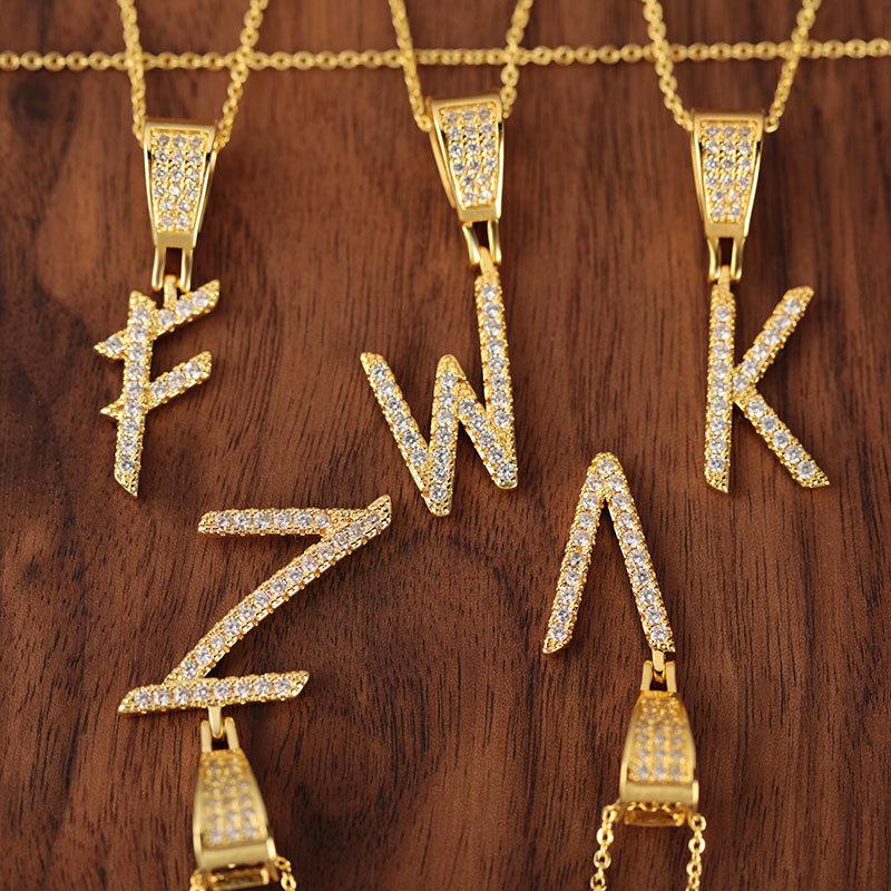 Gold Plated Crystal Initial Letter Necklace Personalized Dainty Name Pendant Jewelry
