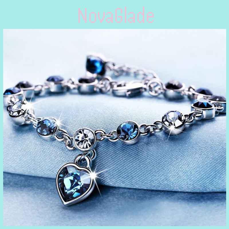 Exquisite Hottest Womens Ladies Crystal Rhinestone Bangle Ocean Blue Bracelet Chain Heart For Elegant Style