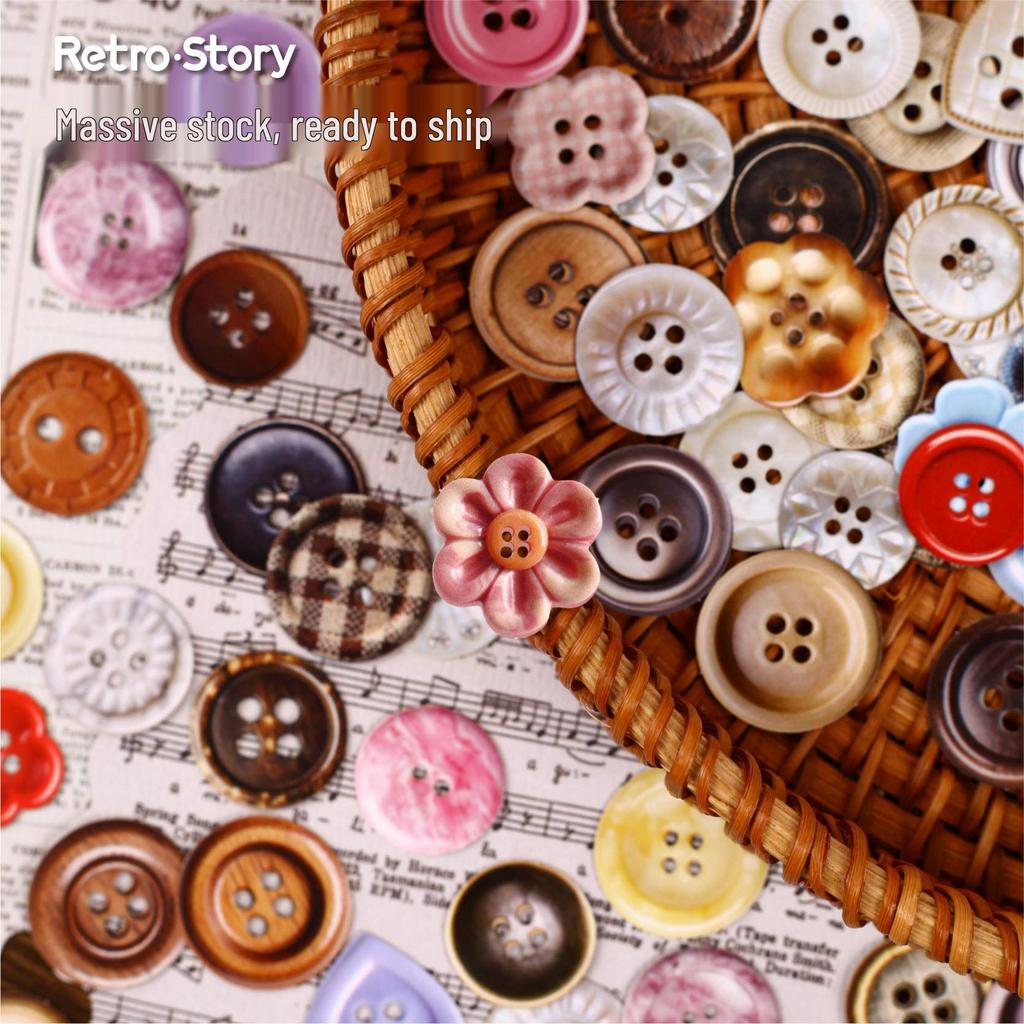 Retro Story Button Series Sticker Pack: 50 Stickers, 6 Styles for Journal Decoration