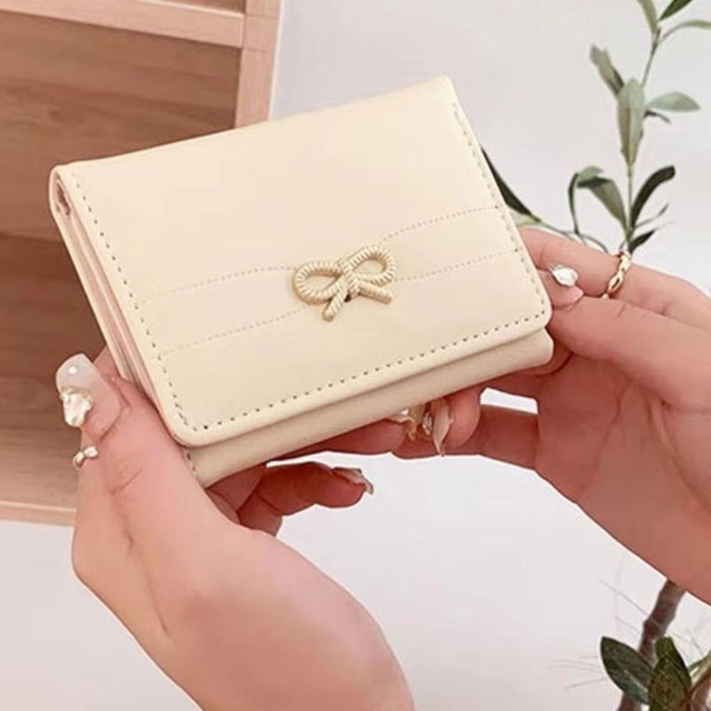 Solid Color Mini Portable Purse Bow Portable Card Holder Card Organizer Female Lady Girl