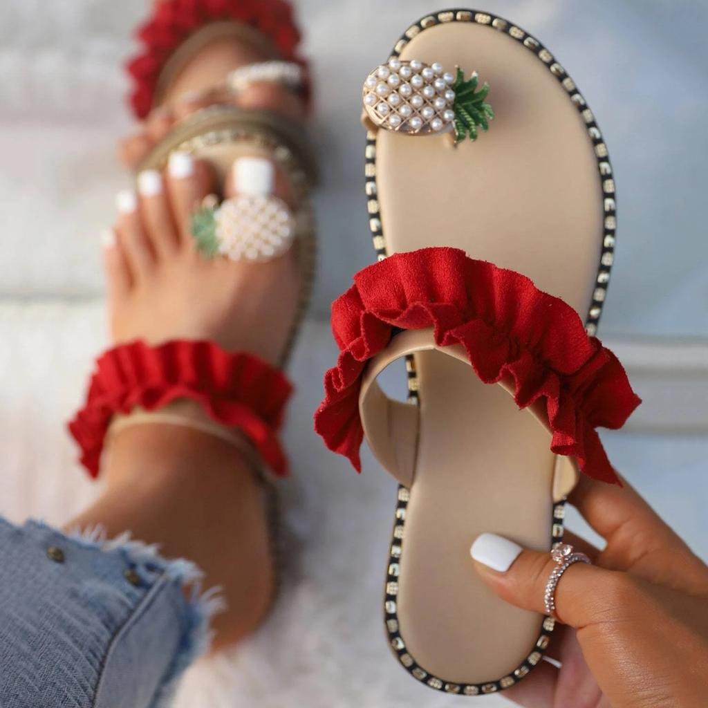 Sandal Heels For Women Women Flat Pineapple Toe Pearl Bohemian Casual Shoes Beach Sandals Slippers Zapatos Mujer