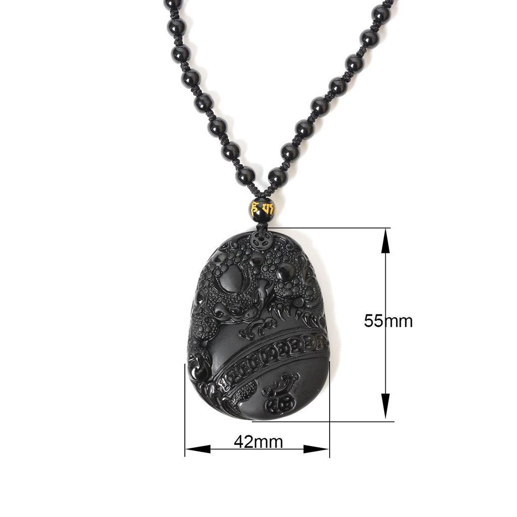 Natural Obsidian Tripod Golden Cicada Money Toad Pixiu Pendant Necklace