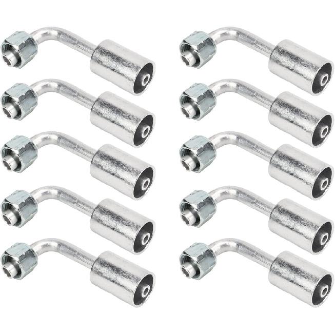 Car AC Aluminum Connector, 10Pcs 3/8in 90 Degree Bend Air Conditioning Splicer Hose Fittings Adaptor Connector Joint Pipe Swivel Coupling Universal