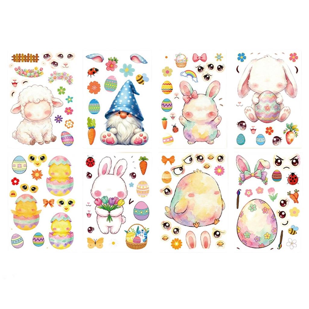 Easter Cute Egg Bunny Stickers (8pcs), Cartoon DIY Stickers, Children's Holiday Gifts, Diary Decorations, Computer Decorations