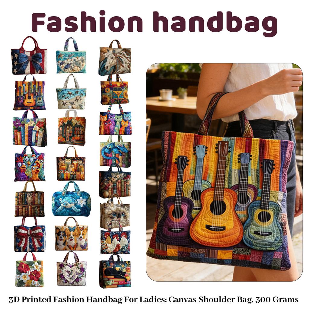 3D Printed Fashion Handbag For Ladies; Canvas Shoulder Bag, 300 Grams
