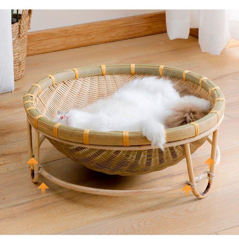 Cat Bed Bamboo Nest - All-Season, Cool Rattan Weave, Double Layer, Red Villa Design, Universal Fit