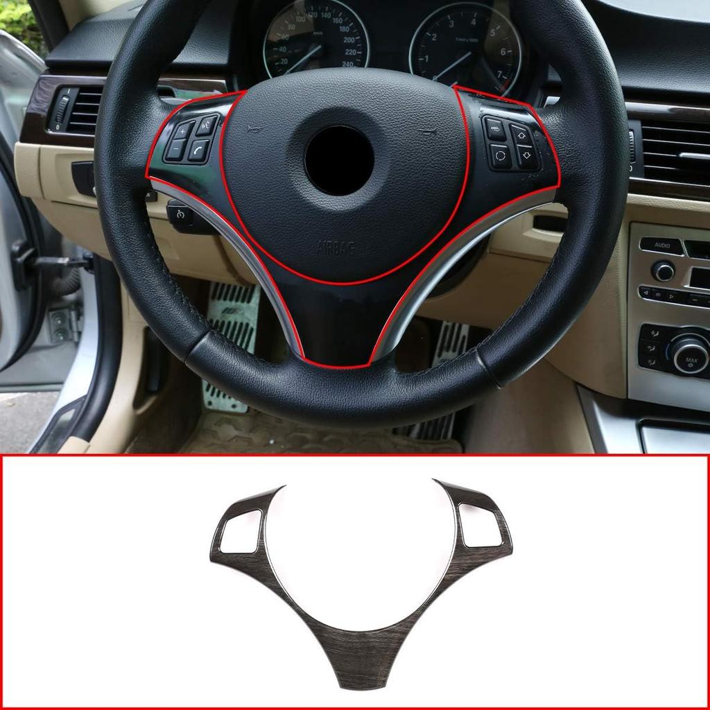 4 Styles ABS Chrome For BMW E90 3 Series 2005-2012 Car Steering Wheel Decoration Frame Trim Accessories (Black Wood Grain)