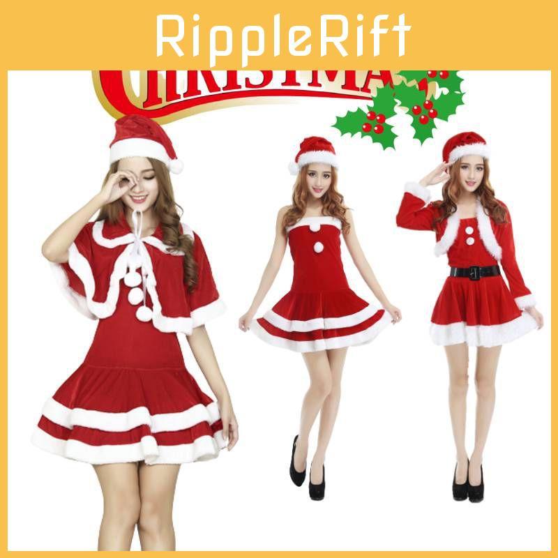 Christmas Santa Claus Adult Female Red Pleuche Dress Suit