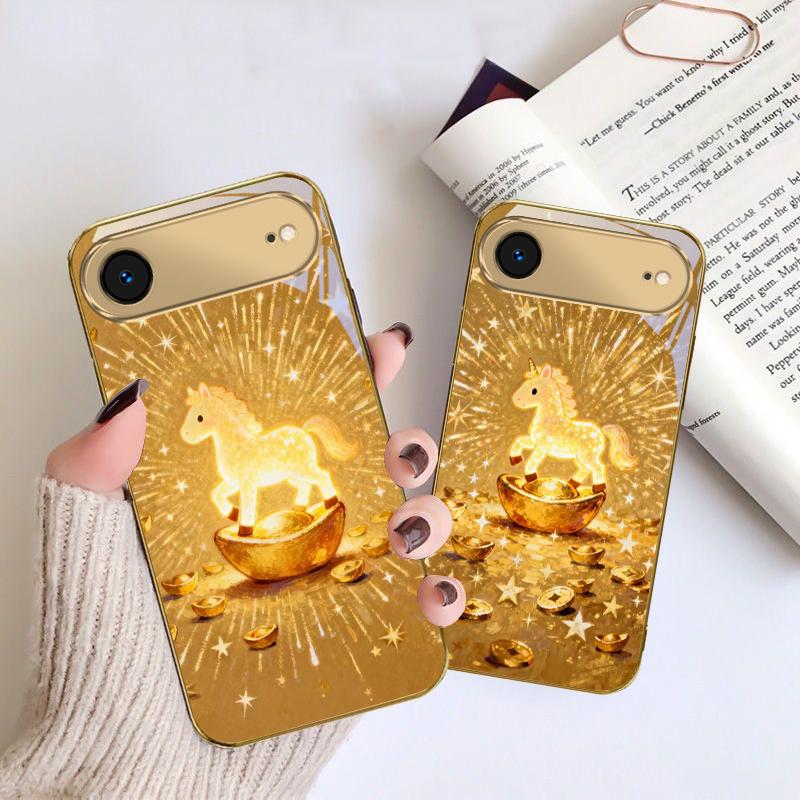 The shining golden pony For IPhone 17Pro Max 16 17 Pro 15 Pro 14 13 Plus 12 Mini 11Pro Max XR 16E 17 Air Golden glass phone case